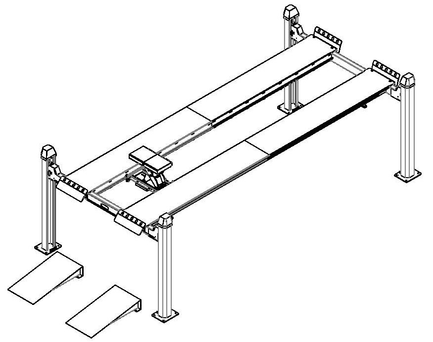 Launch TLT-455W (F) (с траверсой) Серый - гидравлический 4-х стоечный подъемник для регулировки развала-схождения. Грузоподъемность 5.5 тонн, имеет предустановленную траверсу 2,7 т с пневматическим управлением. Управление стопорами — пневматическое с центрального пульта. Подходит для всех датчиковых стендов и стендов 3D.