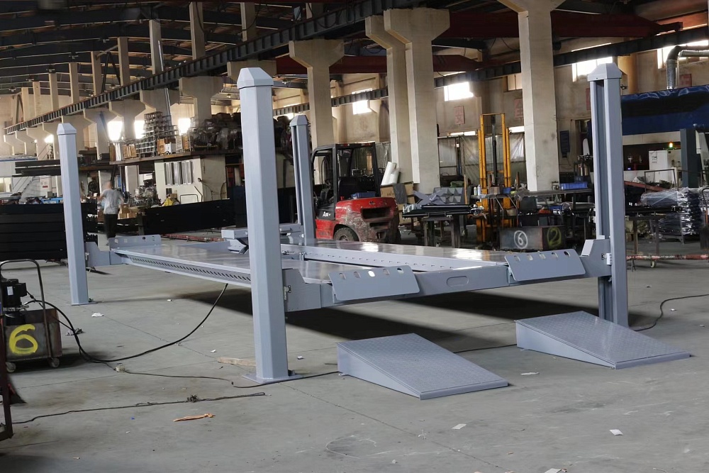 Электрогидравлический платформенный 4-х стоечный автомобильный подъёмник для автосервиса.