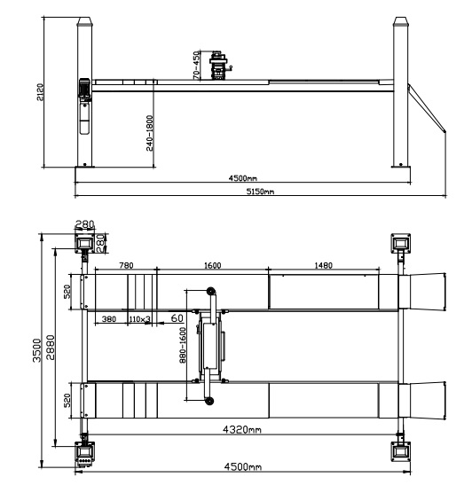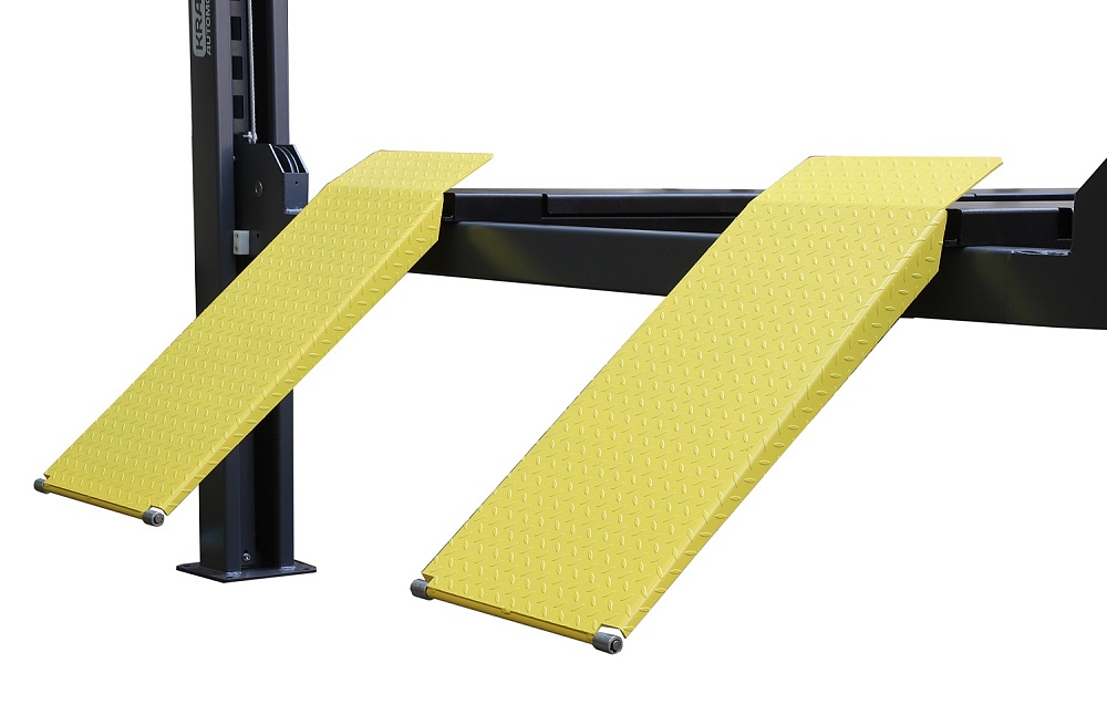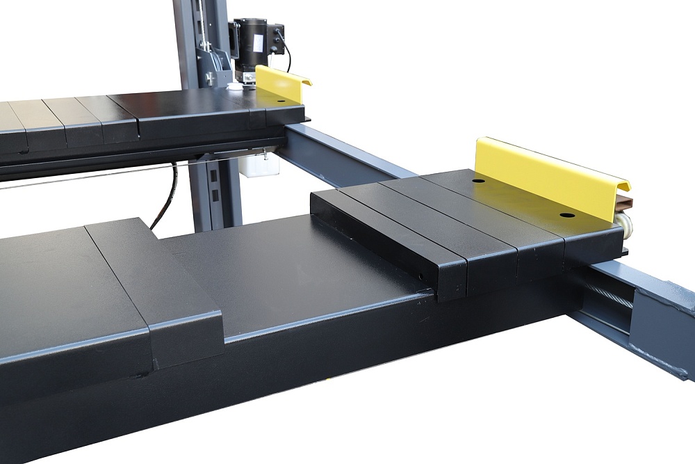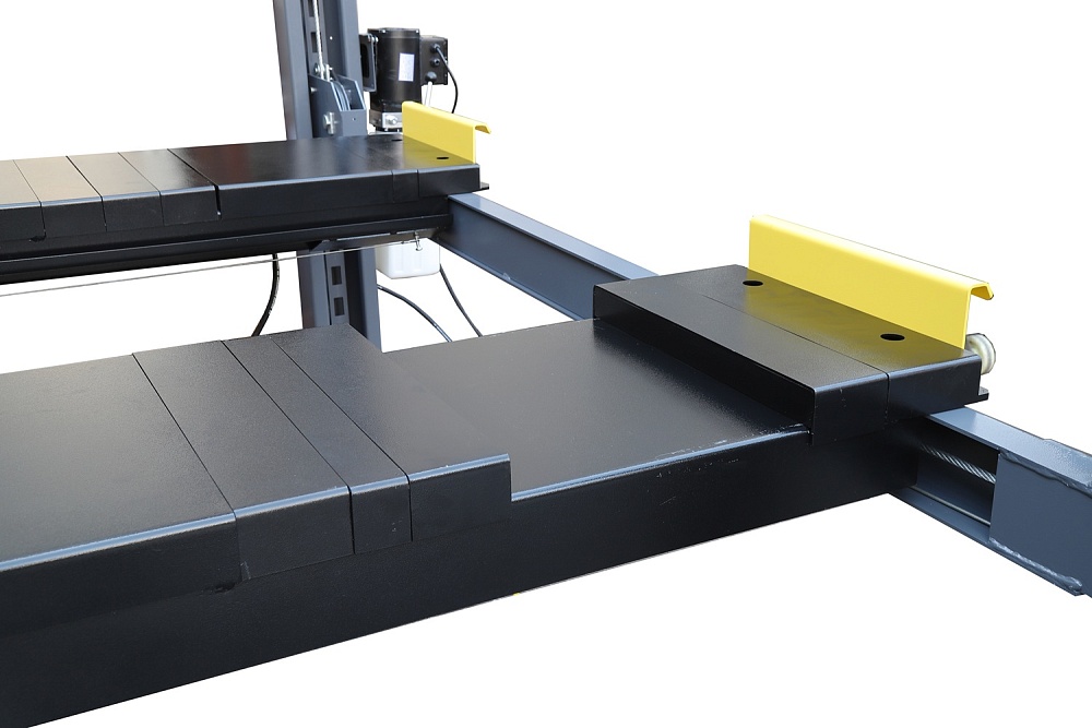 KRW4WL KraftWell Подъемник четырехстоечный, электрогидравлический, г/п 4000 кг., 2,2 кВт, высота подъема 1800 мм., размеры платформ 4320х520 мм, платформы - комплектация для поста сх-развала. С траверсой г/п 2 000 кг.