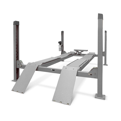 Удлиненный электрогидравлический четырехстоечный подъёмник грузоподъемностью 6,5 т для обслуживания легкового и коммерческого транспорта Оснащение подъемника дает возможность производить регулировку развал/схождения, ремонт тормозной и рулевой систем, и другие работы
