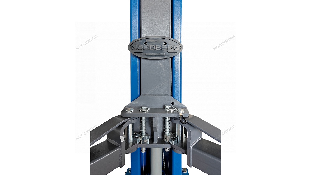 Подъемник 220V 2х стоечный 4т, со снятием стопоров с одной колонны (синий) NORDBERG N4120BM-4B