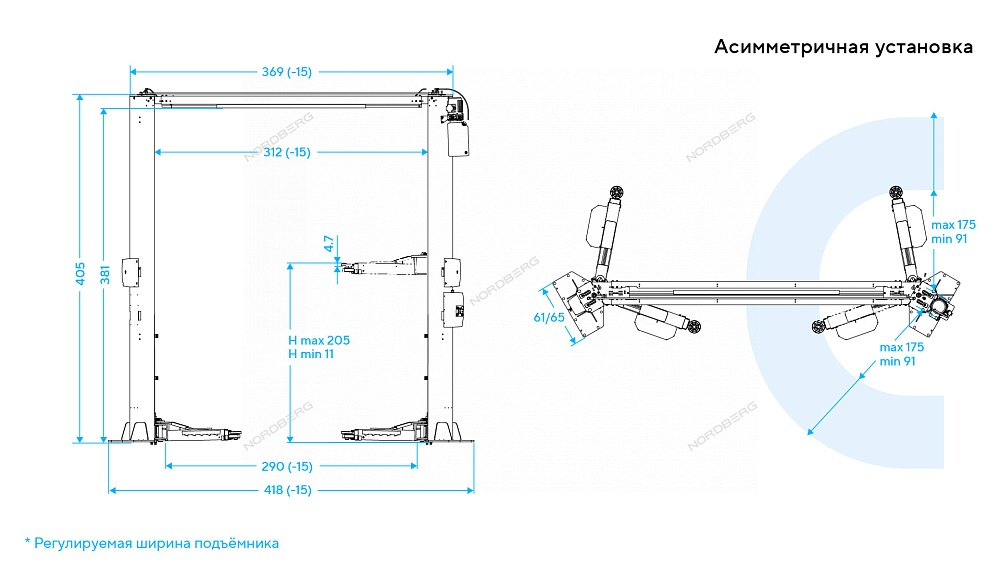 Подъемник двухстоечный 4,5 т, верхняя синхронизация, 380 В, серый NORDBERG N4125H-4,5G купить в Омске цена ✅ - Все для СТО