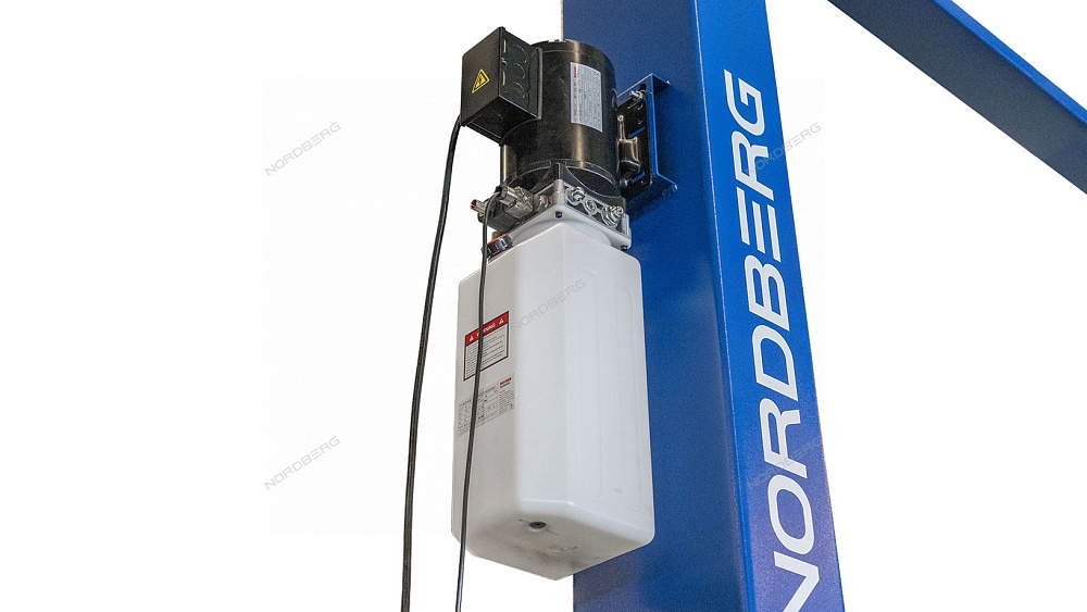 Подъемник двухстоечный 4 т, верхняя синхронизация, с электростопорами, H=4 м, 380 В, синий NORDBERG N4120H1E-4B_3+2_380