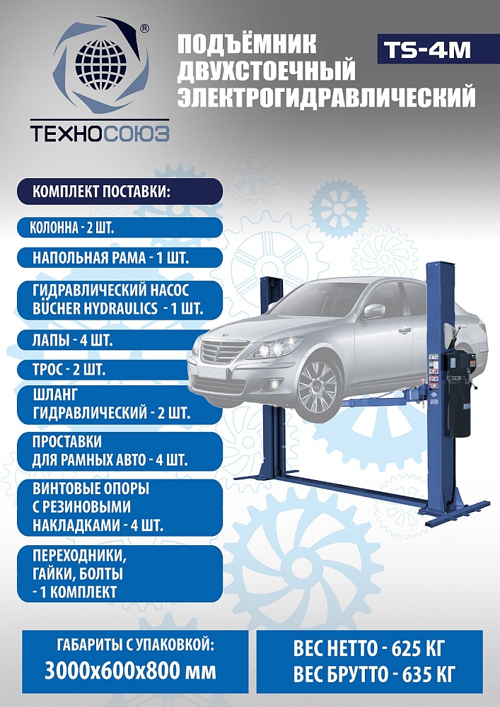 TS-4M Подъемник 2-хст. г/п 4 т с напольной рамой (220 V ТВ) купить в Омске цена ✅ - Все для СТО