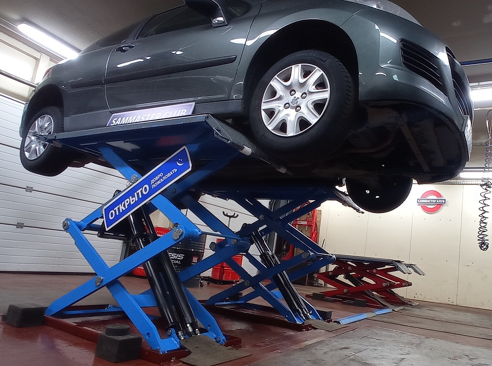 Ножничный гидравлический подъемник предназначен для проведения ТО и ремонта автомобилей.