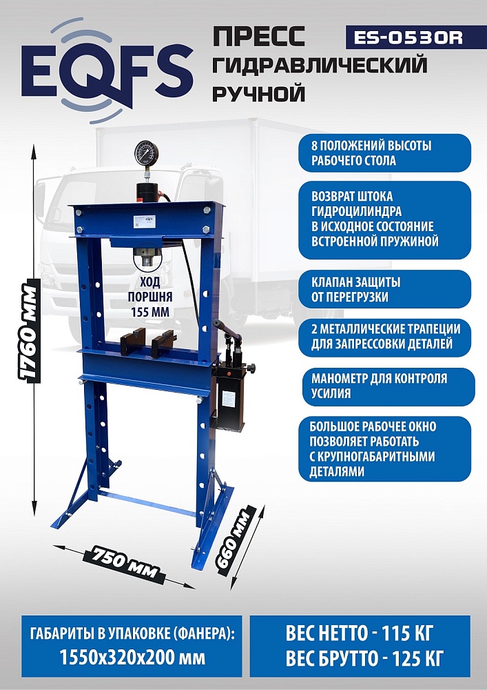 ES-0530R Пресс гидравлический ручной, 30 тонн купить в Омске цена ✅ - Все для СТО