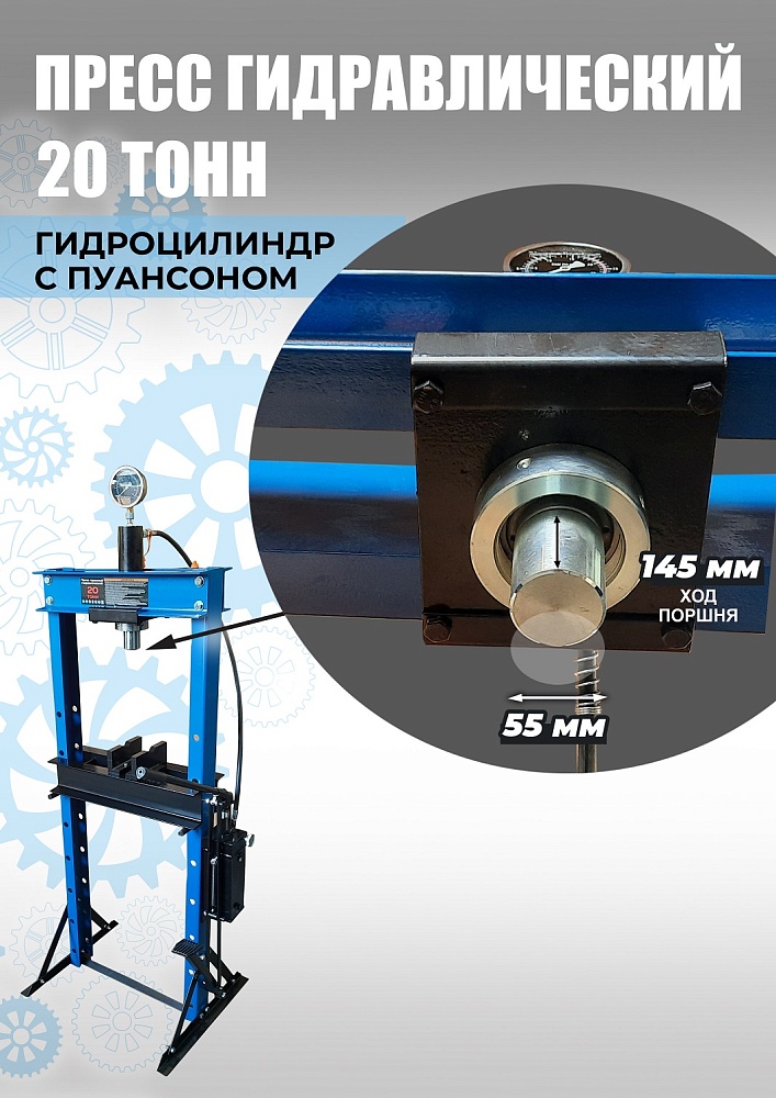 Пресс гидравлический ручной укомплектован насосом с одной плунжерной парой и максимальным усилием 20т.