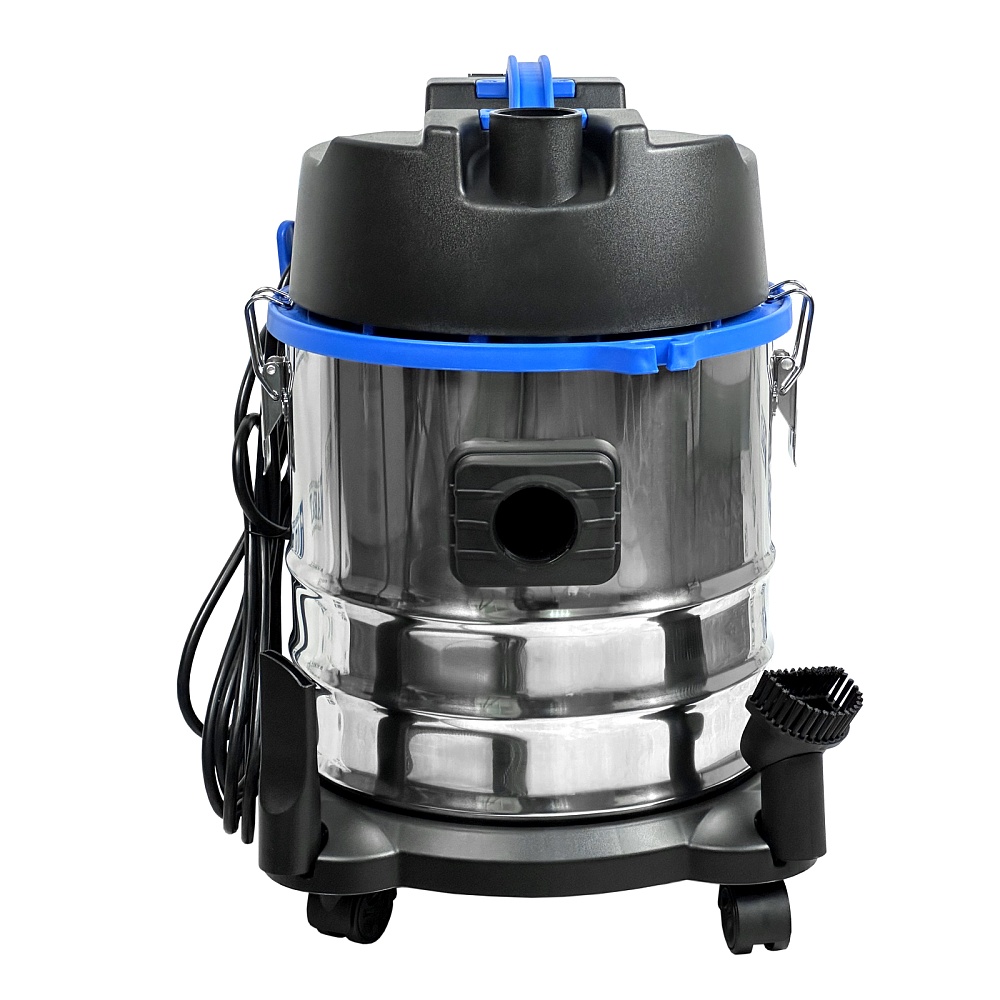 Данной модели не страшен никакой мусор, включая строительный. В конструкции широко применена нержавеющая сталь. Нетканый фильтр можно легко достать и помыть. В комплекте две щетки, щелевая насадка для труднодоступных мест.