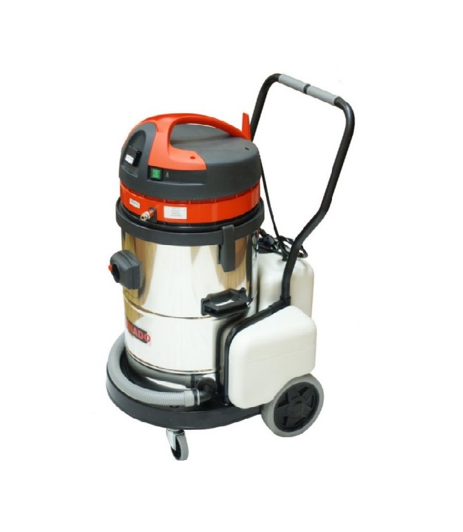 Профессиональный агрегат типа TORNADO 700 Inox изготовлен из нержавеющей стали. Мощность 1,2x2 Квт. Производительность 340 м3/ч. Водопылесос (химчистка) способен осуществлять сухую уборку помещений, а также влажную уборку.