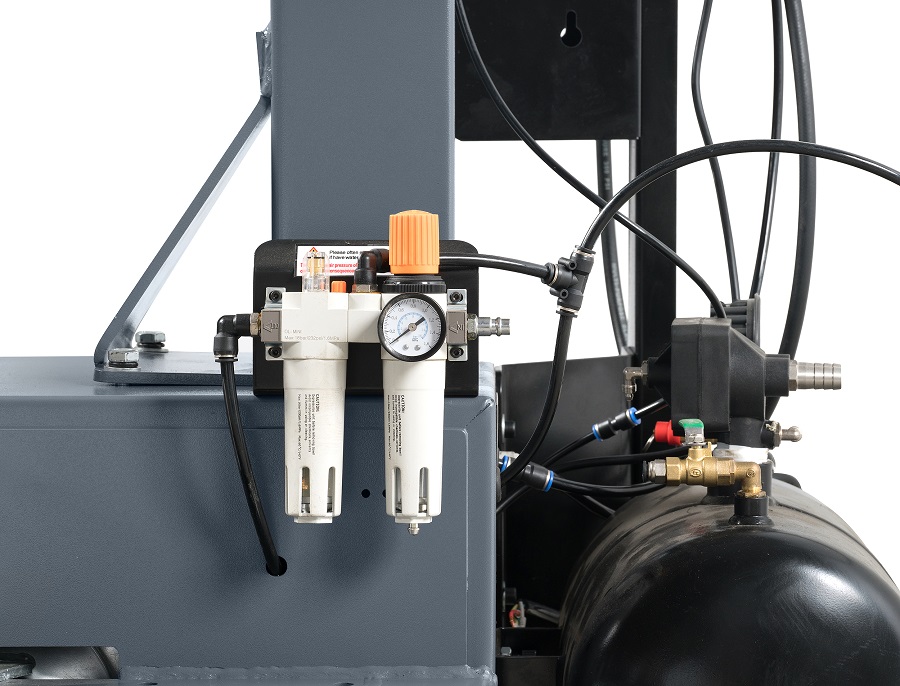 • Мощный пневмоцилиндр отбортовщика (2500 кг) — легко справляется с низкопрофильными шинами.