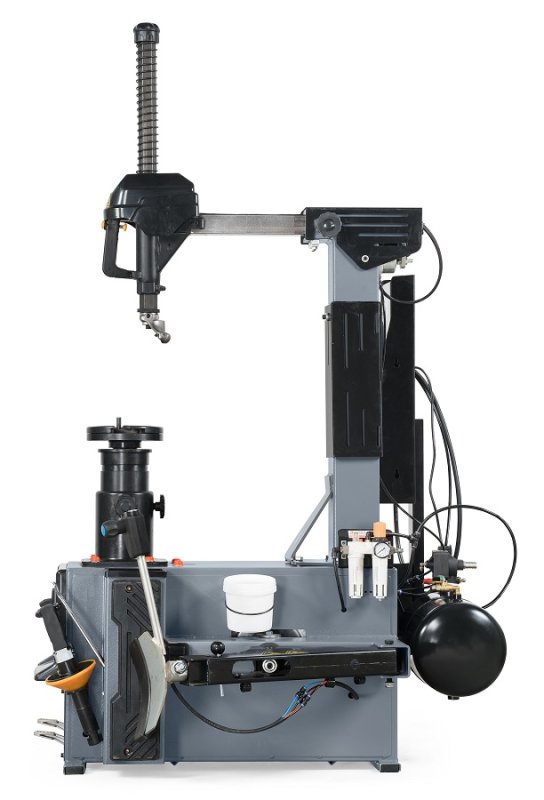 Автоматический шиномонтажный стенд для колес с дисками диаметром 10-24’’. Предназначен для станции технического обслуживания со средним объемом работ. Автомат представляет собой шиномонтажный станок с колонной, которая оснащена пневматическим механизмом фиксации положения монтажной головки в горизонтальном положении и пневматическим же механизмом отвода монтажной стойки.