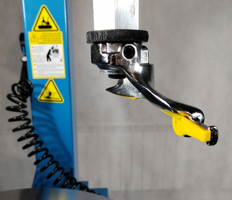 Полуавтоматический шиномонтажный станок с поворотной консолью для колес со стальными и алюминиевыми дисками.