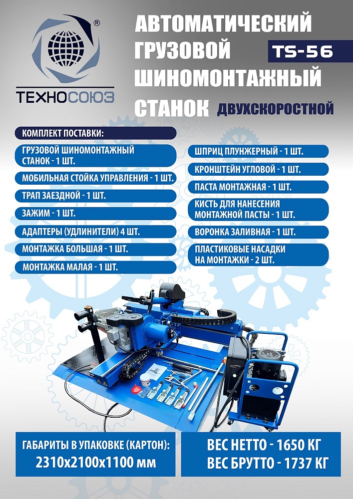 TS-56 Грузовой шиномонтажный станок до 60”, 380В. купить в Омске цена ✅ - Все для СТО
