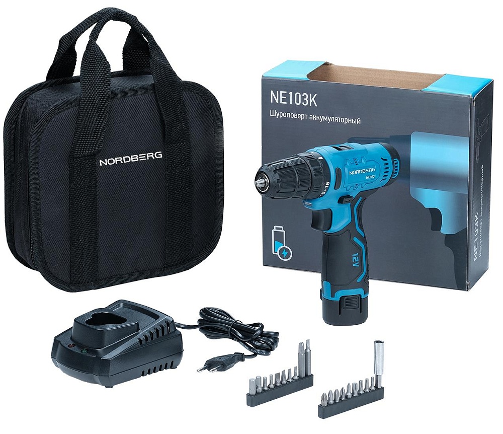 Шуруповерт аккумуляторный макс ? сверла 10мм, 12В, 30Нм с акк. и зар. уст-вом NORDBERG NE103K купить в Омске цена ✅ - Все для СТО