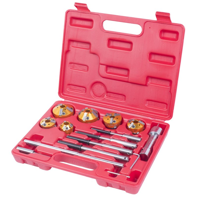 Набор фрез для правки сёдел клапанов, 28-65 мм, кейс, 14 предметов МАСТАК 103-13014C. Набор фрез предназначен для правки методом зенковки сёдел клапанов в двигателе внутреннего сгорания. Устройство МАСТАК 103-13014C позволит добиться идеального прилегания клапана к седлу, что существенно влияет на характеристики двигателя при его работе, увеличивает его ресурс, положительно сказывается на экономичности.