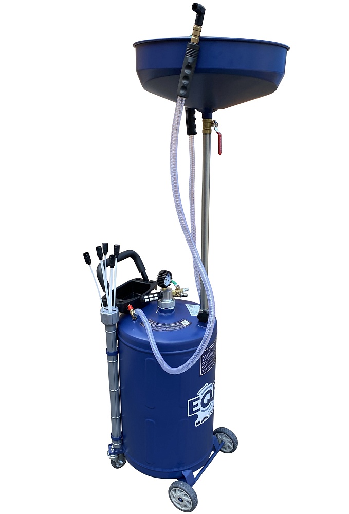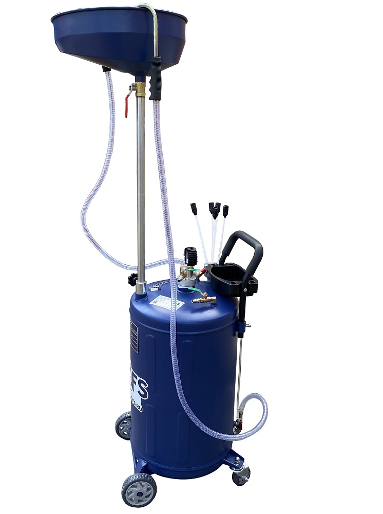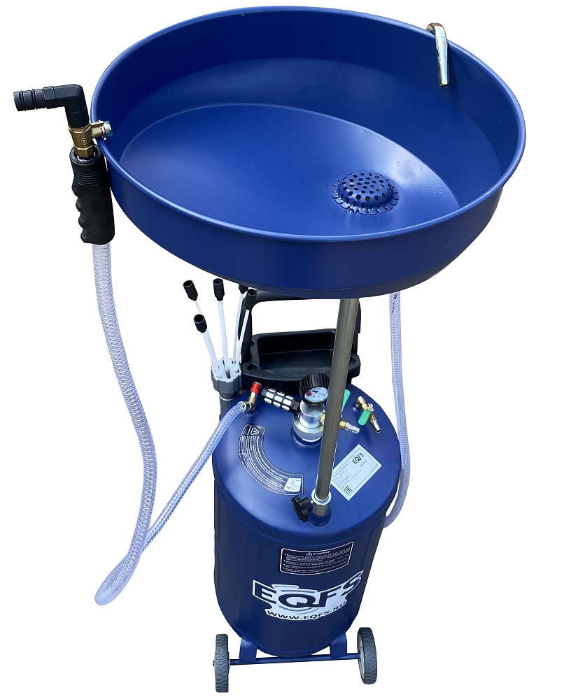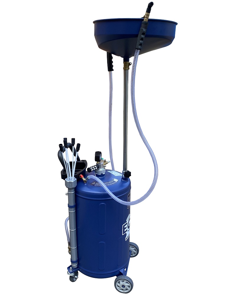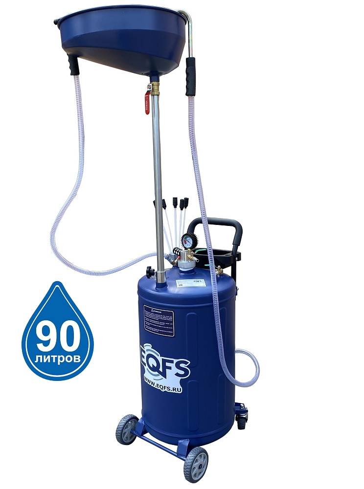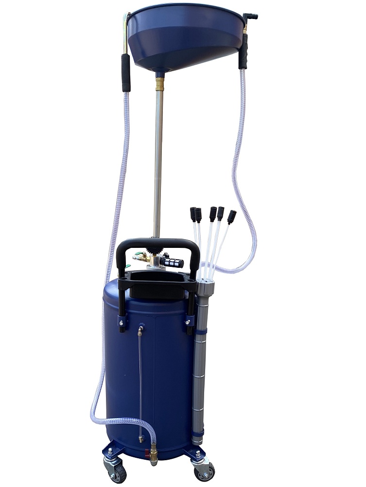 Установка для слива/откачки масла через щупы. Регулировка высоты чаши 970-1570мм. Комплектация: щупы - 5 гибких разного диаметра, манометр (давление/вакуум), лоток, прозрачная трубка для контроля «отработки» в баке. Подключение к пневмолинии - быстросъём. Ёмкость 90л. = Бак 80л + сливная воронка 10л.