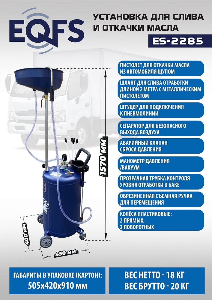 ES-2285 Установка для слива отработанного масла купить в Омске цена ✅ - Все для СТО