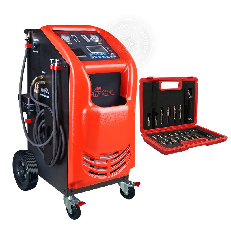 Пневматическая установка для удаления, очистки и замены гидравлических жидкостей в большинстве типов и моделей АКПП, трансмиссий, гидромуфт, масляных радиаторов и гидравлических трубопроводов.
