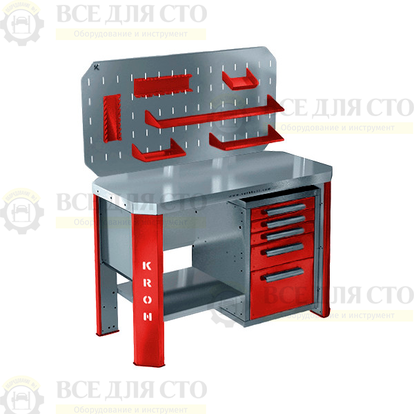 • Повышенная прочность. Благодаря своей уникальной конструкции и толщине составных деталей, максимальная распределенная нагрузка на верстак может составлять до 6000 кг, а на ящики и полки 50 кг.