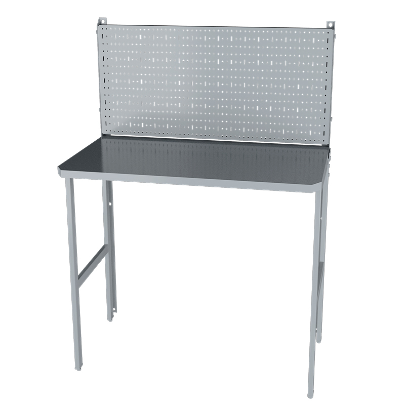 Дополнительно на стол-верстак можно установить полку, всевозможные держатели инструмента, на перфорацию удобно крепятся магнитные держатели. Также с рабочим столом отлично сочетается навесная полка.