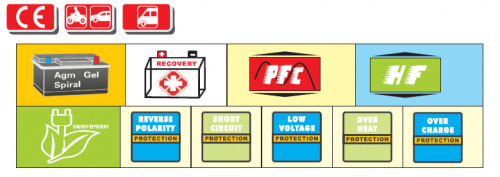 • Для зарядки свинцовых, спиральных, гелевых аккумуляторов