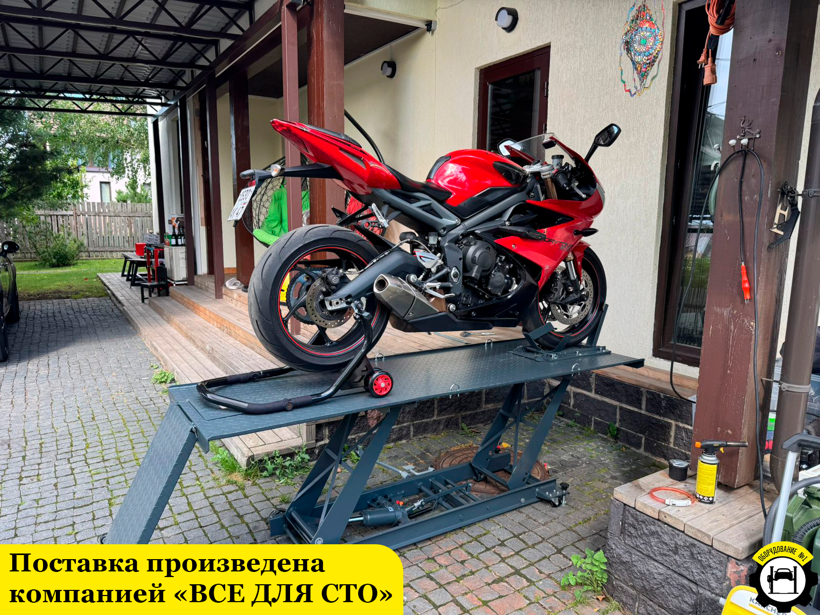 Платформенный мотоподъемник с гидравлическим приводом предназначен для подъема мототехники при проведении покрасочных, кузовных и других работ в условиях автосервиса.